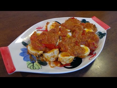 Cara Membuat Sambal Telur (Egg Sambal) #ResepTKI - Indonesian Egg Sambal Recipe - Bahan-bahan: Telur rebus (goreng) Bawang merah Bawang putih Bawang bombai Jahe Cabe kering Garam Penyedap rasa Gula merah Minyak Note : Kalo ...